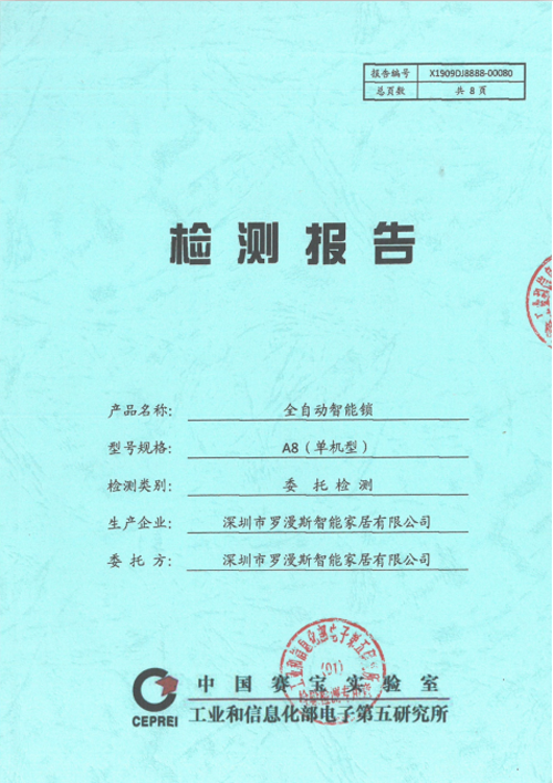 最近,羅曼斯的A8全自動智能鎖、新產品G3智能鎖嚴格執行有關規定和要求,各自通過了中國賽寶實驗室產品認證、公安部安全與警用電子產品質量檢測中心&國家安全防范報警系統產品質量監督檢測中心認證。