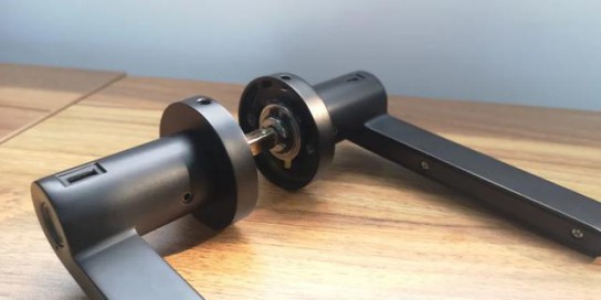 ND100的內外執手及其組件,均為黑色磨砂質感,手感溫和,沒有冰冷的刺激感。指紋頭設置在執手前部,手握執手即可指紋解鎖,指紋頭采用的是半導體指紋傳感器,真正做到流暢開啟。