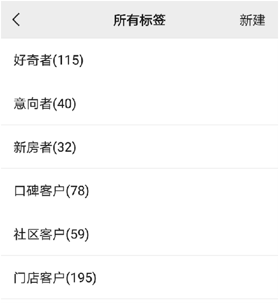 對于智能鎖銷售人員來說,朋友圈管理的本質就是給好友列表分類,進而針對性的展示信息。因此,銷售人員與顧客溝通的過程中,應獲得相應反饋,了解顧客潛在屬性,并以此為依據,進行標簽化設置管理。以下為標簽分組示例。
