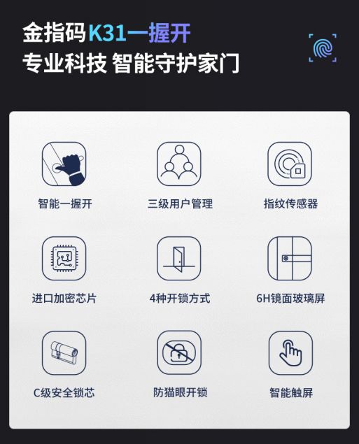 作為金指碼又一性價(jià)比之作,K31智能鎖由內(nèi)而外性能全在線。瑞典FPC指紋傳感器、全銅C級鎖芯、304不銹鋼鎖體是必須,更采用了全新智能芯片,識別更流暢,體驗(yàn)更優(yōu)秀。
