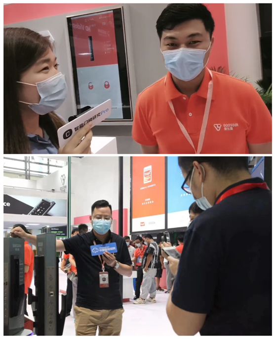 在展館內部,展示了保仕盾旗下全系列產品,例如爆款Q1Pro,同時,由保仕盾自主研發的Q3系列智能鎖——Q3C、Q3F,也首次亮相建博會。豐富的產品和新品的亮相,吸引了大量觀眾圍觀。