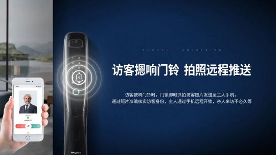 惠氏H7VR還具備門鈴聯動遠程開鎖功能,家人回家按響門鈴時,門鎖會自動抓拍圖像實時發送至關聯手機,用戶通過關聯手機即可查看家人回家狀態??吹靡姷陌踩?,無論居家或外出都安心。