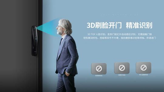 日常生活中,忘帶或者弄丟鑰匙的情況并不鮮見,特別是記憶力較差的老人和小孩。為了避免有家回不得的情況發生,惠氏H7VR具備七種便捷開門方式,支持人臉識別解鎖,采用3D TOF人臉識別技術,內嵌的活體檢測和人臉比對算法,符合金融支付級安全標準,精準識別。