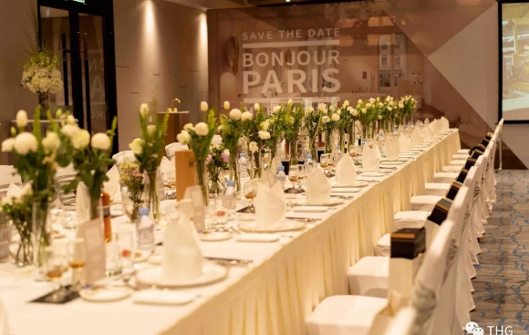 本次活動邀請了THG Paris在當(dāng)?shù)氐暮献骰锇榧按罂гO(shè)計(jì)師,宴會廳以THG標(biāo)志性的法式風(fēng)尚風(fēng)格布置,簡約設(shè)計(jì)中處處可見優(yōu)雅精致的細(xì)節(jié)。