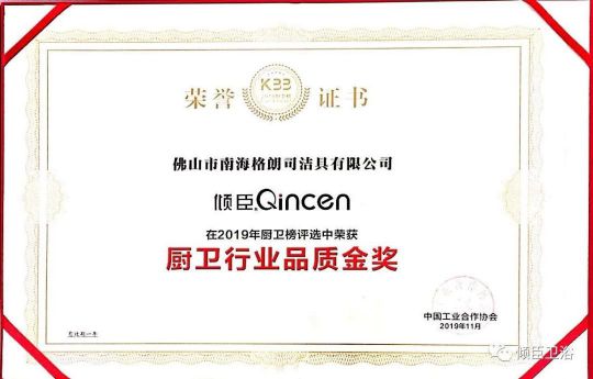 11月2日,以“迎戰整裝大時代”為主題的中國廚衛行業高峰論壇在佛山盛大召開。在會議的頒獎典禮上,格朗司旗下兩大品牌----傾臣衛浴和朗司衛浴,憑借別具匠心的產品設計構思以及卓越的品質優勢和工匠精神,分別榮獲“廚衛行業品質金獎”及“浴室柜創意設計金獎”。