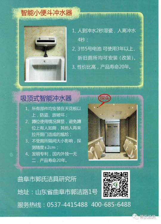 曲阜市郭氏感應(yīng)用品股份有限公司愿為人類廁所的節(jié)水節(jié)能、提高廁所潔具的人性化而不懈努力。
