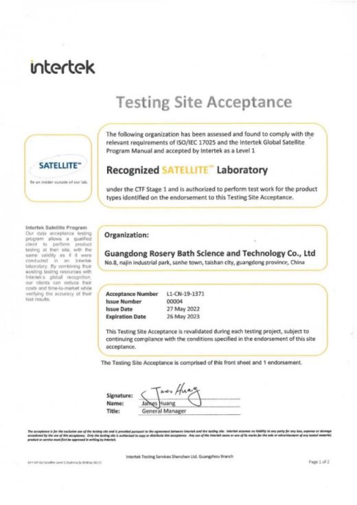 玫瑰島自2017年首次通過Intertek“衛(wèi)星計劃”實驗室審核,至今已連續(xù)6年獲此資質(zhì)。獲得認(rèn)證的衛(wèi)星實驗室的檢驗?zāi)芰Ω采w了淋浴房的密水性能、耐久性能、穩(wěn)定性能等關(guān)鍵技術(shù)指標(biāo),實驗室出具的檢測報告符合歐洲標(biāo)準(zhǔn)EN14428,可以作為產(chǎn)品檢測資質(zhì),用于國際出口憑證。