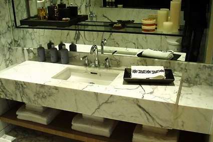 水槽是搭配整體櫥柜時必不可少的組件,誰家衛生間不洗菜、洗碗呢?不過,無論是歐琳、摩恩等單獨出售水槽的品牌還是志邦、我樂、歐派等將水槽整合在櫥柜里一起銷售的品牌,水槽材質都以不銹鋼為主,以至于記者在看見石材水槽時,還挺稀奇。