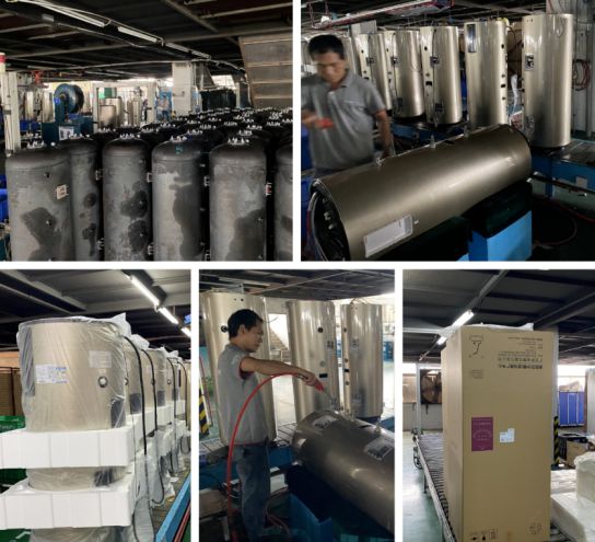 車間緊鑼密鼓生產(chǎn)中央熱水器愛琴海150L