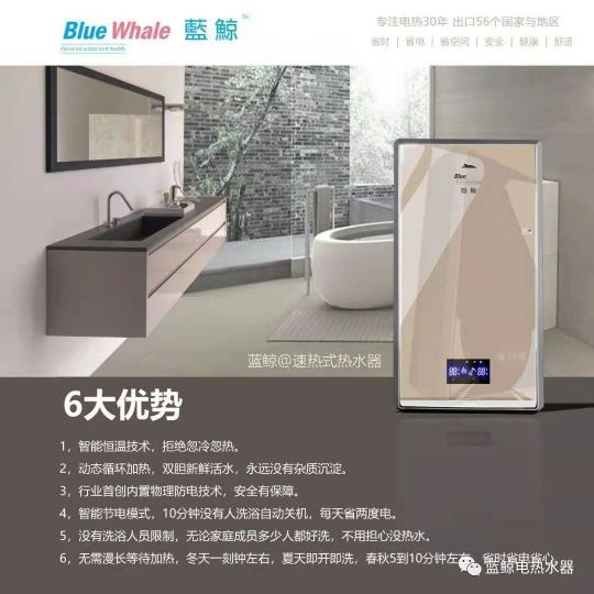 藍(lán)鯨速熱式電熱水器,采用動態(tài)熱循環(huán)技術(shù):雙膽結(jié)構(gòu),利用熱動力學(xué)和熱流循環(huán)原理,完全打破傳統(tǒng)電熱水器“靜態(tài)加熱“的模式,實(shí)現(xiàn)水對加熱體表面的主動接觸,讓熱能更高效的方式傳遞在水中,熱循環(huán)加熱技術(shù),讓水在內(nèi)膽里不斷流動,避免死水在膽內(nèi)滋生細(xì)菌,以及生成水垢!有效延長了加熱體以及內(nèi)膽的使用壽命!