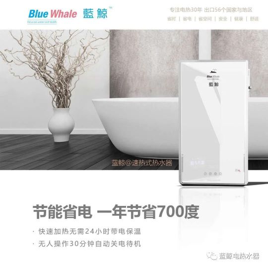藍(lán)鯨速熱式電熱水器因預(yù)熱時(shí)間非常短,所以幾乎沒有熱能量散失,用時(shí)打開不用時(shí)就關(guān)閉,用多少水就熱多少水,沒有像儲水式熱水器這樣,需要全膽加熱,浪費(fèi)洗澡剩下的熱水能耗,真正做到了省電省水。