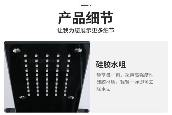 不僅如此,淋浴屏還采用304不銹鋼防指紋處理工藝,使產品保持原有光澤,歷久彌新,增加產品壽命的同時無需經常性的維護和保養,并運用了智能LED顯示屏技術,伴有一鍵熱水定制功能,高清簡單的屏面,讓老人小孩簡單易懂。