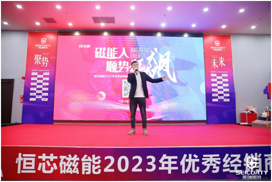 在陣陣掌聲中,佛山市恒芯磁能科技有限公司總經理楊朔楊總應邀發表致辭,為本次年會的成功舉行以及對在場嘉賓的到來表示熱烈的慶祝與真摯的歡迎。楊總表示,“新時代·做新商”,在疫情的三年里斯瑞斯特沒有停止技術研發、產品研發和營銷研發的腳步,現在我們已經做好了所有準備:全品類磁能產品、短視頻營銷、直播營銷、實體門店新媒體化轉型以及總部賦能終端的B2S2C系統。2023年市場大復蘇,萬事俱備,東風已來,磁能人將在萬物復蘇、新媒興起的時代,打造百家百萬級盈利的新媒體實體店。異軍突起,順勢狂飆,掀起一場磁能財富盛宴。
