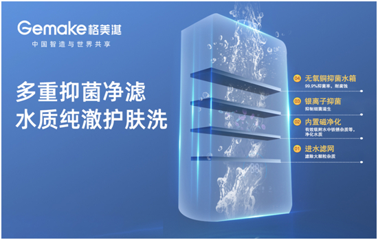 熱水說到就到,水質也要健康潔凈。格美淇零冷水熱水器HX221系列升級了進水濾網、內置磁凈化、銀離子抑菌、無氧銅抑菌水箱四重抗菌凈化系統,能有效過濾水中泥沙、鐵銹等雜質,抑制細菌滋生,呵護嬌嫩肌膚及敏感肌,沐浴更健康。