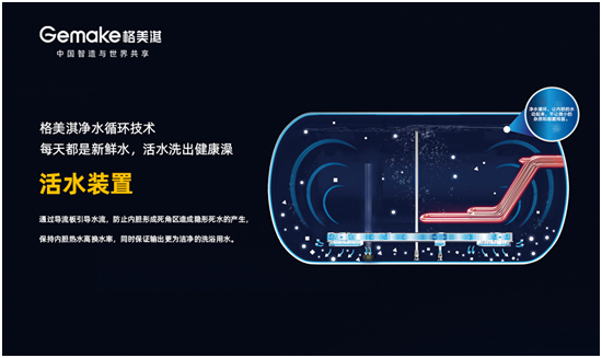 格美淇獨有的換水洗系統,在不影響熱水效率的前提下,通過水流動力學原理,利用專利導流裝置,帶動熱水器內膽的隱蔽死角水體區域有效流動起來,主動激活內膽“死水”,減少細菌、泥沙、水垢等污垢沉淀,達到“流水不腐”的效果。