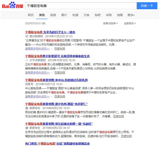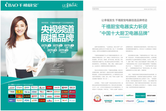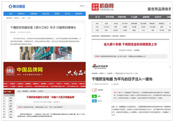 《新浪家居》、《網(wǎng)易家居》、《搜狐網(wǎng)》、《騰訊家居》、《中國品牌網(wǎng)》、《中國品牌招商網(wǎng)》、《中國建材家居網(wǎng)》等數(shù)百家網(wǎng)站對千禧廚寶電器進行全年跟蹤報道,堅持將品牌的第一手資訊帶給經(jīng)銷商與消費者。