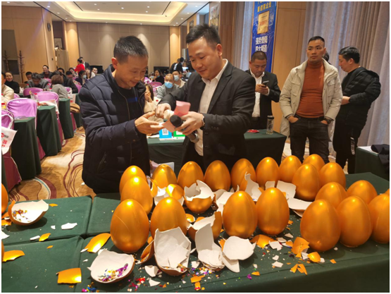 優惠政策,終端支持,助力銷售!感恩回饋激烈方案一經公布,便得到現場經銷商的一致熱烈反響。在主持人宣布下單訂貨環節開始時,全場經銷商都爭先恐后地涌向合作簽約臺,勢要為自家終端門店帶回更全面多樣的靚麗新品。而為了回應經銷商們的熱烈支持,銀田總部亦特別為大家準備了驚喜滿滿的砸金蛋環節,以集成灶、煙機、熱水器等豪華大禮相贈,力保經銷商家人們都能在本次會議中“滿載而歸”!