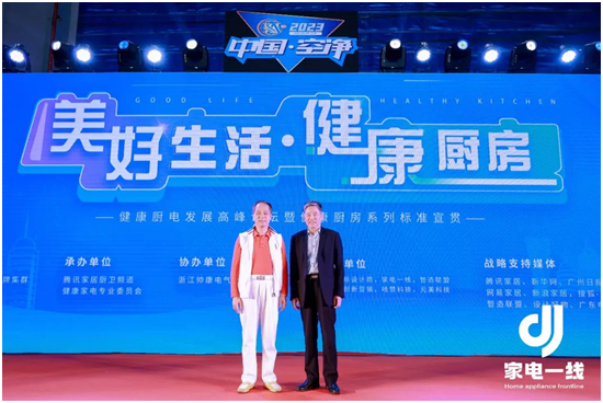 廣東省室內(nèi)環(huán)境衛(wèi)生行業(yè)協(xié)會會長顧士明為樂鈴電器授予“健康廚房系列標準起草單位”牌匾,以嘉獎樂鈴電器在本次《健康廚房系列標準》制定上的貢獻。