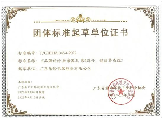 樂鈴憑借著在廚房電器領(lǐng)域內(nèi)吸油煙機和集成灶對廚房油煙難關(guān)的攻克,參與《健康吸油煙機》、《健康集成灶》等團體標準的制定,推動行業(yè)的健康升級,守護億萬家庭的呼吸健康。