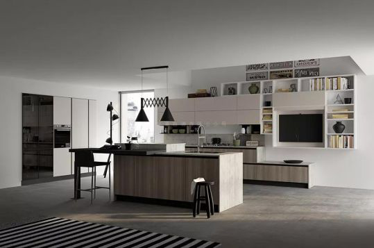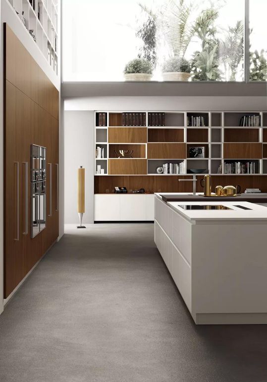 當廚房櫥柜不再僅僅是廚房櫥柜,為它也注入不同的元素,是不是就會衍生出不同的形態。利用巖石板、金屬、木材等材料,融入了設計者的制作熱情,打造出潔凈輕奢的感覺,讓女主人在廚房也可以享受社交歡樂。