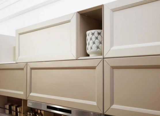 無拉手設計對于空間不大的廚房,櫥柜柜門可以選擇無拉手設計。