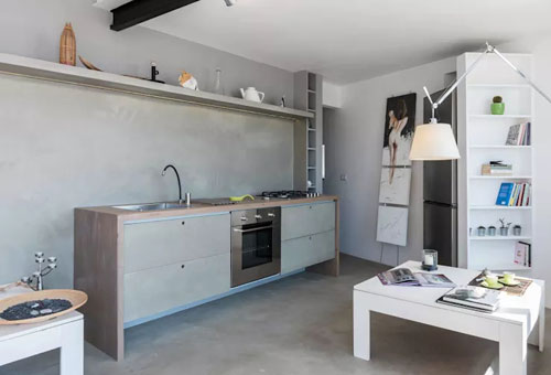 誰說小住宅里的廚房就要被犧牲呢?這個案例裡的廚房就利用了階梯下面的角落,把畸零空間變身成夢幻簡約式的廚房,上下都做了收納柜,確保了廚房的功能一定很完備。這個看起來就不會花太多錢。