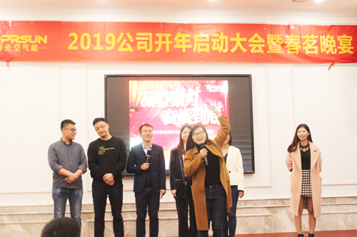 年會現場氣氛活躍異常,多才多藝的外貿部同事還為大家奉上了青春熱舞《向前(錢)沖》,充滿活力的舞蹈,博得現場陣陣掌聲和歡呼聲。同時晚會當中還穿插了趣味游戲和激動人心的抽獎環節,整個晚會春光空氣能公司上下一片歡樂祥和、喜慶熱鬧,特別是搞笑成語游戲更是讓現場所有人喜上眉梢,歡笑不斷。