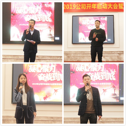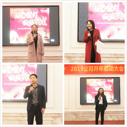 晚會在公司高層管理人員的述職報告中拉開帷幕,莊嚴而具有儀式感的述職報告主要圍繞2018年的工作成果、自身不足之處、改進措施以及2019年的工作目標四個方面來總結。國內家用、海外銷售、技術部、采購部、生產部、PMC部以及總經辦等相關負責人,依次上臺全面而深入地進行自我審視,重新認識自我,重新出發。接下來的銷售宣誓環節更是激情滿滿,每位銷售人員都面對公司所有人進行公開鄭重宣誓,不達目標,誓不罷休。相信,面對2019年挑戰,各事業部全員都將全力以赴、奮勇直前,在2019年的市場戰爭中,打出一個漂亮的翻身仗!正所謂“一個人可以走的快,一群人才能走的遠”,在無法預測的激烈市場環境中,團隊的高效執行力對制勝市場來說顯得至關重要,而這也往往取決于一個團隊自內而外的凝聚力、向心力、戰斗力、執行力。