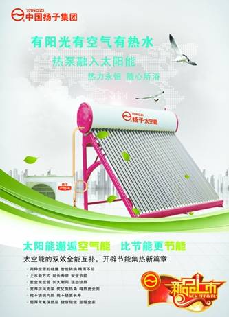 有陽光,有空氣,二者有其一,就有熱水,“太陽能+空氣能”雙能全效互補,揚子太空能熱水器能給您更舒適、更節能的熱水生活!