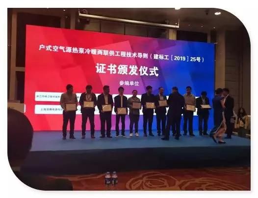 濕騰電器,被鑒于在溫濕度控制領域的獨角獸地位,以及快速在國內空氣源熱泵兩聯供市場樹立起來的標準化標桿形象,良好的市場信譽與突出的系統節能貢獻,受邀參加了這兩次會議,并在1月8日該“導則”初稿討論會上,獲頒“參編單位”證書。