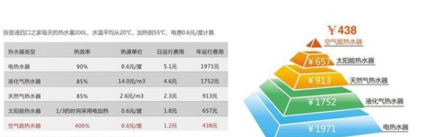 以一般4口之家每一天使用200L熱水來估算,水溫均值從15℃加熱至55℃,米特拉空氣能熱水器所需費用開支等同于電熱水器和液化氣熱水器的1/4,天然氣熱水器的1/2,太陽能熱水器的2/3。