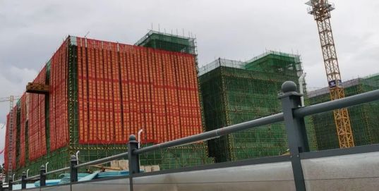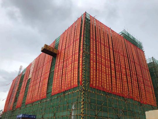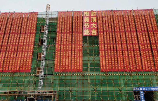 隨著封頂儀式完成,高樓上方“封頂大吉”的紅幅格外醒目,一條條紅色條幅、一句句鼓勵(lì)鞭策,把現(xiàn)場(chǎng)裝點(diǎn)得格外喜慶。