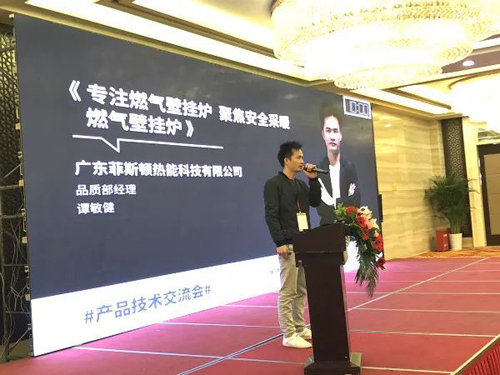 菲斯頓壁掛爐品質(zhì)部經(jīng)理譚敏健在會上做“安全采暖”專題分享