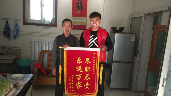 之后,亓飛逐一檢查了用戶家中可疑的漏風點,最終發現主燃氣管道正在泄漏。對此,亓飛立即采取緊急措施,聯系燃氣公司,幫助妥善解決燃氣泄漏問題。此后,亓飛開始了壁掛爐的點火和調試,使用戶的家庭供暖順利進行。在亓飛的幫助下,曹以明一家沒有危險。為了表達他的感激之情,曹以明特地做了一面錦旗,送到村委會交給亓飛。