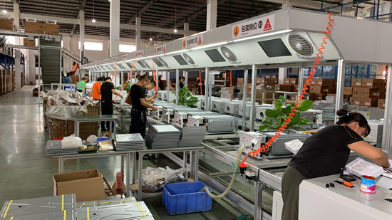 “現(xiàn)在目前我們已經(jīng)開設(shè)3條生產(chǎn)線運轉(zhuǎn),每天的產(chǎn)量在2000臺左右,確保了產(chǎn)品的如期發(fā)貨。”
