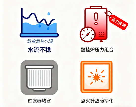 熱水忽冷忽熱的根源主要在于溫度控制系統與用水需求之間的匹配失衡。首先,系統水壓不穩定是常見原因,當水壓低于1bar或高于2.5bar時,壁掛爐的恒溫系統難以精準控制,導致熱水溫度波動。其次,熱交換器積垢會影響熱傳導效率,尤其在水質較硬的地區,水垢堆積會嚴重干擾熱交換過程。再者,部分品牌機型的溫控系統精度有限,難以適應不同用水場景的需求。