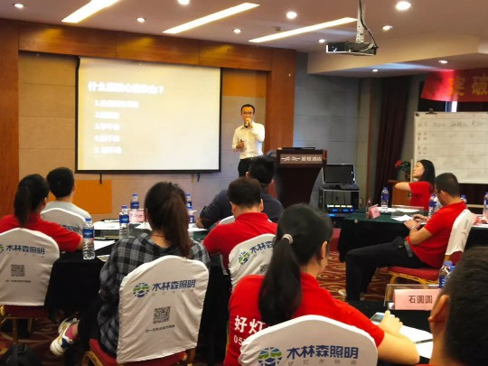 培訓課程正式正式開始,木林森照明家居渠道總監吳三春首先為大家分享講解《木林森家居經銷商發展之道》。吳總從照明燈飾行業和木林森家居的現狀分析,指出新中產階層的九大特征,引出“品牌化經營”、“規模化經營”、“專業化經營”、“公司化經營”和“網絡化經營”的經銷商發展之道,以及講授如何打造門店超級戰斗團隊。