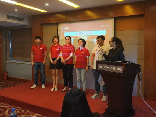 家居市場推廣經理肖小平對現場進行氣氛熱場,宣講了分組PK制及計分政策。通過討論,各組紛紛制定了隊名,隊呼,選定了隊長,并分組上臺展示團隊風采。