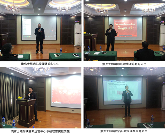 28日,澳克士照明盛會再續,澳克士總經理潘振華先生、總經理助理陳鵬屹先生、陜西區域經理趙長青先生、陜西新運營中心總經理曾憲柱先生、原點國際燈都城總經理仇辛裴先生及澳克士全國物流商們出席“品牌戰略會議”。