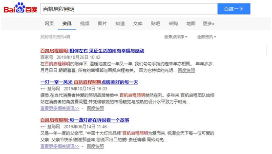 如今,經銷商與消費者通過百度、谷歌、搜狗等七大搜索引擎,便可輕松“網羅”到百凱啟程照明的相關品牌資訊及最新活動內容。