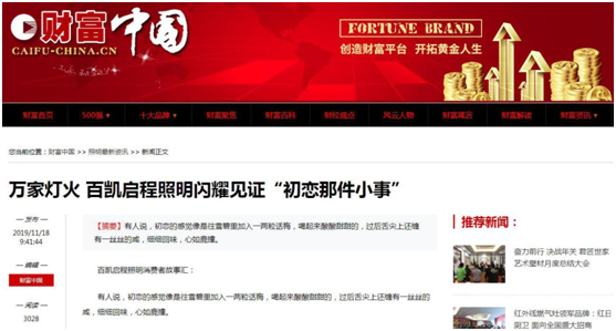 如與大家分享某位消費者與百凱啟程照明之間的故事,感動了萬千讀者。同時得到了《財富中國》的寄語:也許在你的故事中,百凱啟程是你迷茫失意時的領航燈,是你成功如意時的聚光燈,是你多愁難眠時的小夜燈......生命中每一段起起伏伏的歷程,都值得被珍藏。