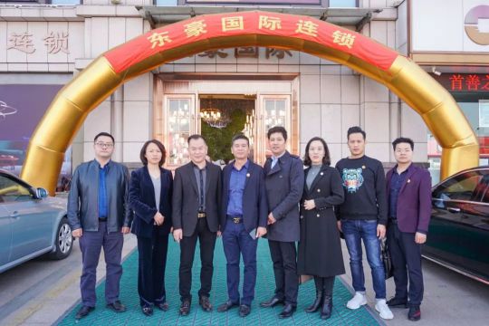 考察組在東豪國際連鎖合影(左一:嘉宏燈貿(mào)中心常務(wù)副總沈君峰;左五:東豪國際連鎖董事長許峰)