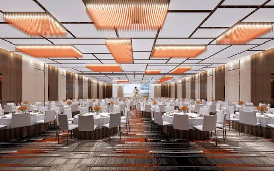一層宴會廳以亮橙色貫穿于整個設計,在雅致的大堂中跳脫出活力與時尚,為賓客帶來一種積極美好的生活向往。