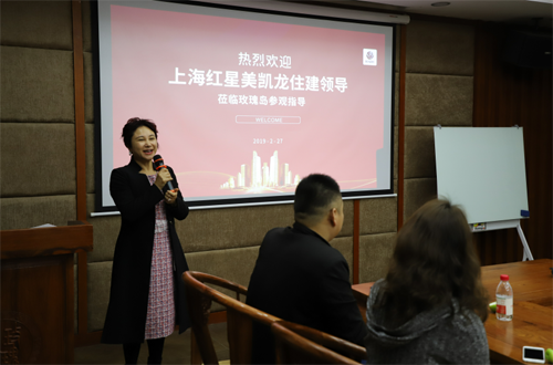 上海紅星美凱龍住建此行到訪,深入了解了玫瑰島優秀的項目案例、參觀了玫瑰島成熟先進的生產車間、國際生產線及檢測實驗室。就玫瑰島生產規模、生產工藝流程及玫瑰島的管理水平、質量管控和服務能力進行了實地考察。