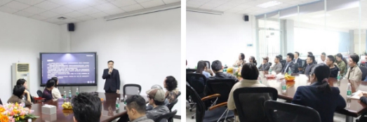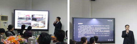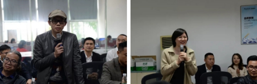參觀完Neptum萊博頓淋浴房展廳后,Neptum萊博頓市場部總監黃治鵬為廣州來的設計師們講解Neptum萊博頓品牌優勢。