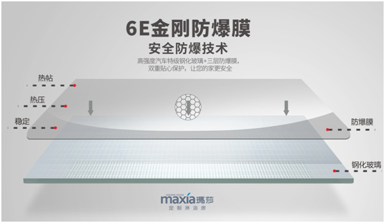 早在2007年,瑪莎淋浴房便開始選擇性加貼安全防爆膜。經過多年的升級和改進,其生產技術日益成熟穩定,具備了全面普及加貼安全防爆膜的硬性條件。因此,自2012年起,其投入重金打造熱貼膜的無塵車間和流水生產線,應用于為全產品系列加貼安全防爆膜,將僅有的千分之三玻璃自爆率的可能性危害排除在外。