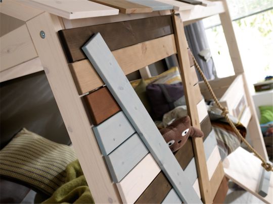 樹屋床極其適合孩子攀爬,它造型多變、奇特的造型讓孩子喜不自勝,樹屋床富有一種魔力讓人恍如在夢想和現(xiàn)實游離,依稀憶起自己的孩童時光,那些置身于大自然,那些殘留在記憶中的芳草氣息和許許多多對神秘森林的好奇尋勝……