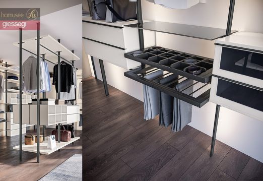 意大利Homusee公司直營Giessegi 現代板式家具Giessegi的極簡風衣帽間,設計如紛擾塵世的一股清流,可以讓你回歸到最簡單的自己。開放式衣帽間不僅極大的解決了衣服多沒地方放的問題,收納空間也得到了極大的改善,再也不用衣服扔的滿地都是了,意大利工藝特有的“一柜到頂”,2.94米板材絕對不是吹的,國內目前制造板材的工藝絕對達不到這個尺寸。如此一舉兩得的衣柜, 不僅實用更加美觀。