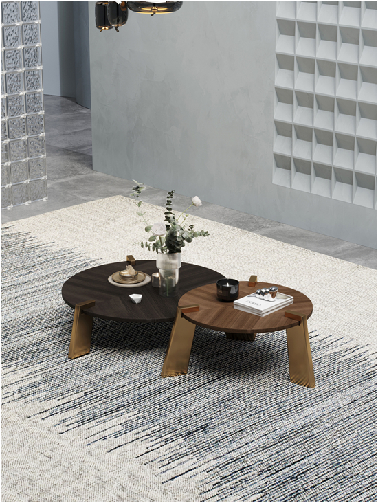 搭配黑胡桃與金屬板材結(jié)合而成的茶幾,從細節(jié)處流露高品質(zhì)的生活方式。柔和的桌盤,細膩內(nèi)斂,自然逼真的紋理,透露出一種高級感。