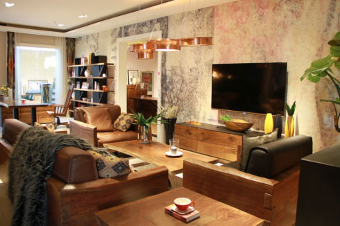 從照片中不難看出,原生態實木系列保留了黑胡桃木原始的樹干輪廓,以及天然形成的樹節,未經修飾的色澤與紋理坦然躍于家具表面,原始、粗獷的氣息撲面而來,讓鋼筋結構的都市空間回歸原始清新的自然森林,如一股清流貫穿居室空間。